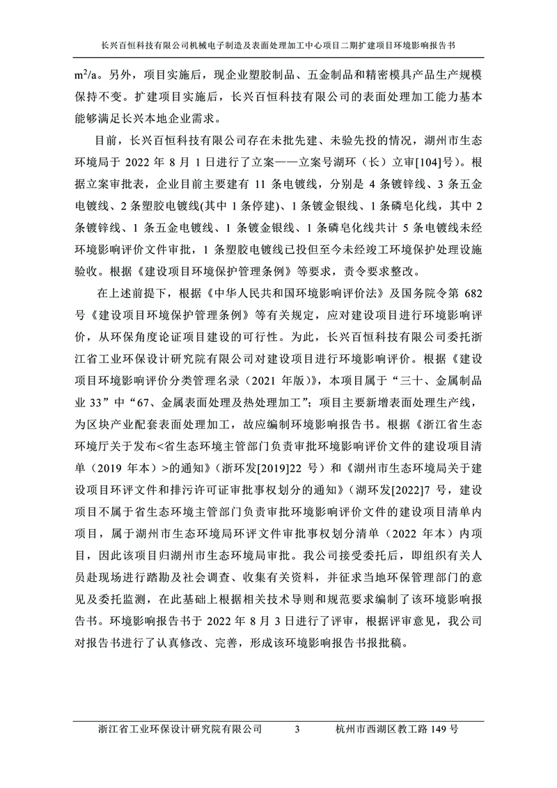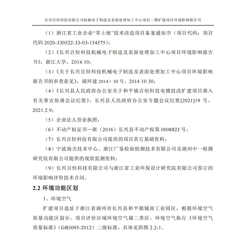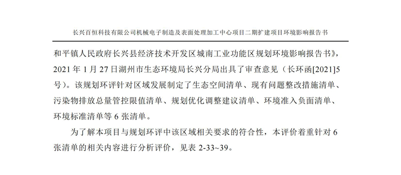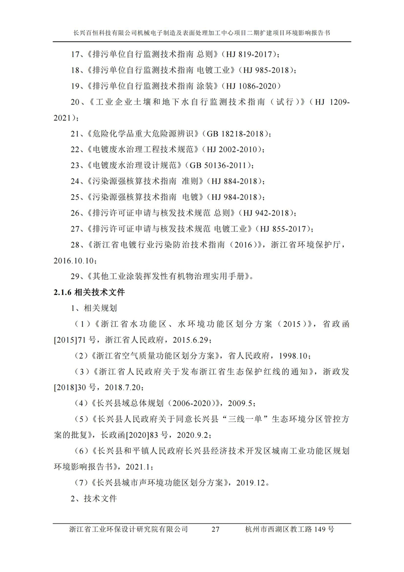 更多完整版詳情請下載文件預覽 “ 長興百恒科技有限公司機械電子制造及表面處理加工中心項目二期擴建項目 環境影響報告書 ” |